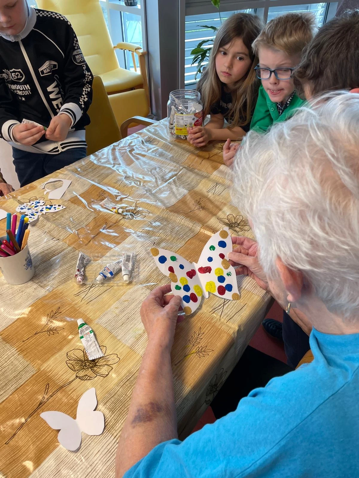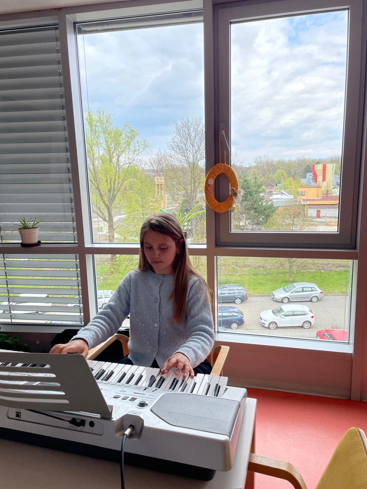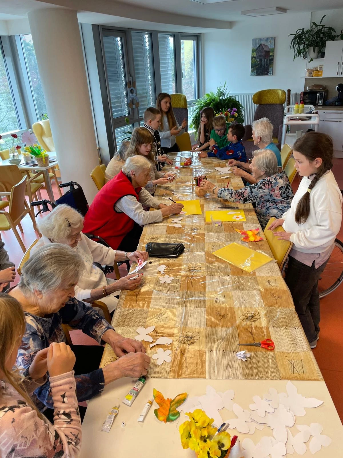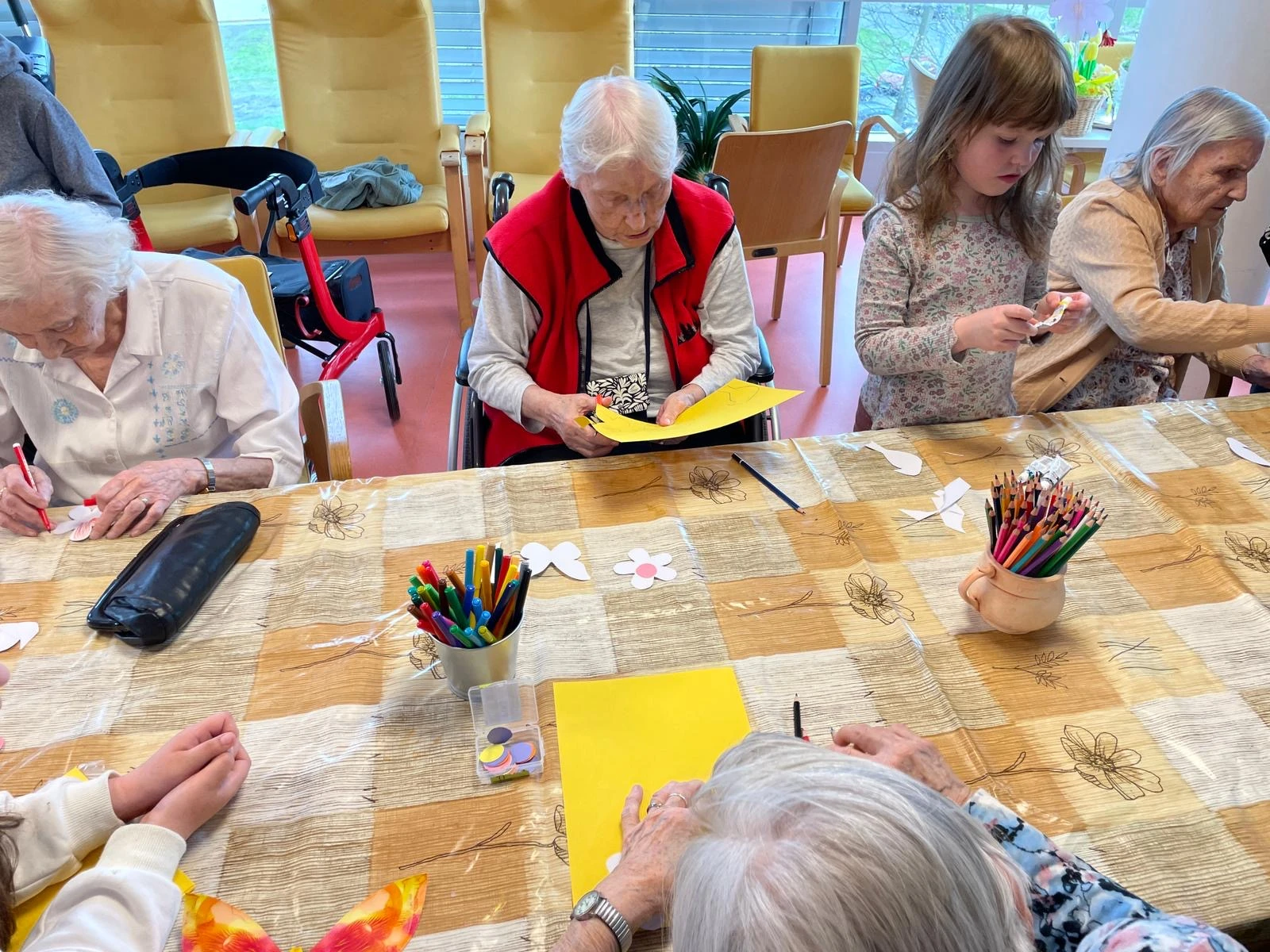 Dnešní úterní odpoledne 21. 4. 2026 patřilo návštěvě seniorům v Domově na ul. 28. října. Jako obvykle jsme toto milé setkání zahájili vesele, a to zpěvem nejznámějších lidových písní s doprovodem kláves. Těchto hudebních tónů jsme si dále všichni mohli užít při poslechu dvou sólových skladeb v podání Karolíny Holubové ze 4.A. S příjemnou náladou jsme se pak společně pustili do tvoření jarních zápichů do květináčů. Děti se zapojily s pomocí seniorům při obkreslování, stříhání nebo lepení motýlů, květinek nebo ptáčků. Vytvořené dekorace vyzdobily pokoj zúčastněným seniorům, kteří se s láskou loučili s dětmi a budou se těšit na další společné setkání.