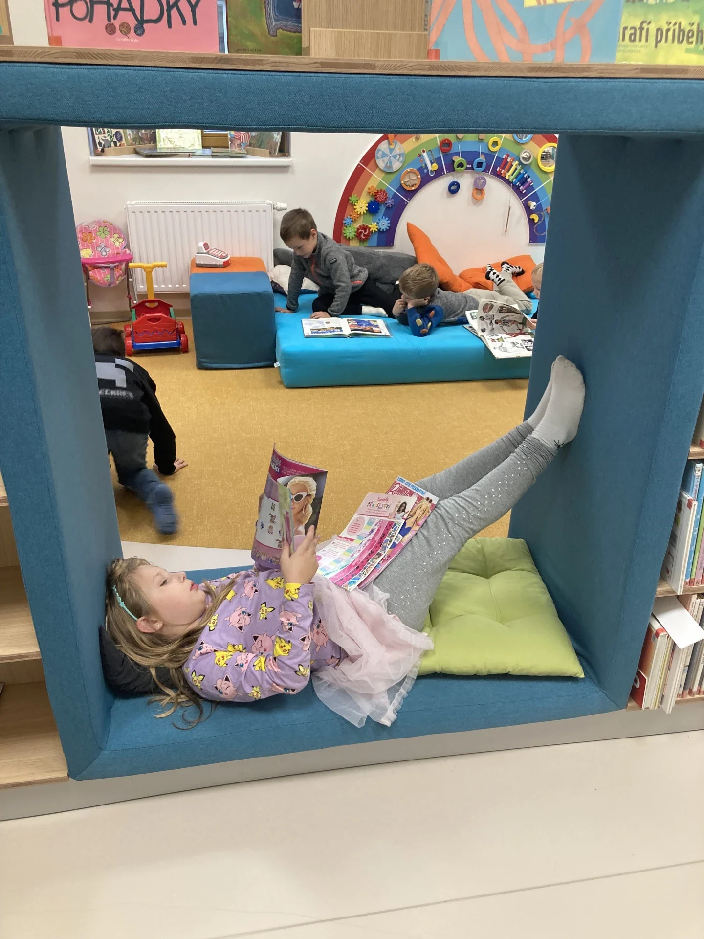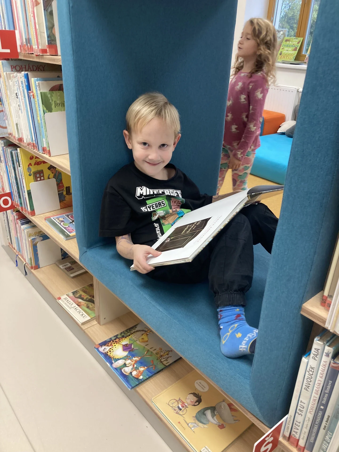 V rámci týdnu knihoven jsme se vypravili na první návštěvu do městské knihovny. Většina dětí již zázemí knihovny znala, a tak bez váhání zamířila k policím s knihami. Společně jsme strávili asi dobrou půlhodinku mezi knihami, prohlížením a vyprávěním o tom, co se v knihách píše. Návštěva knihovny se dětem, zejména prvňáčkům moc líbila. Všichni se těší na další setkání s knížkami, které jim budou pomáhat nejen ve čtení, ale také v poznávání nových světů a příběhů.