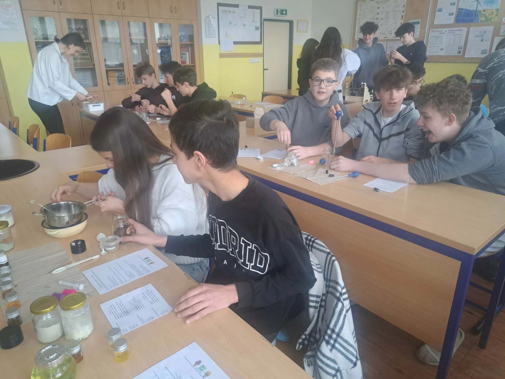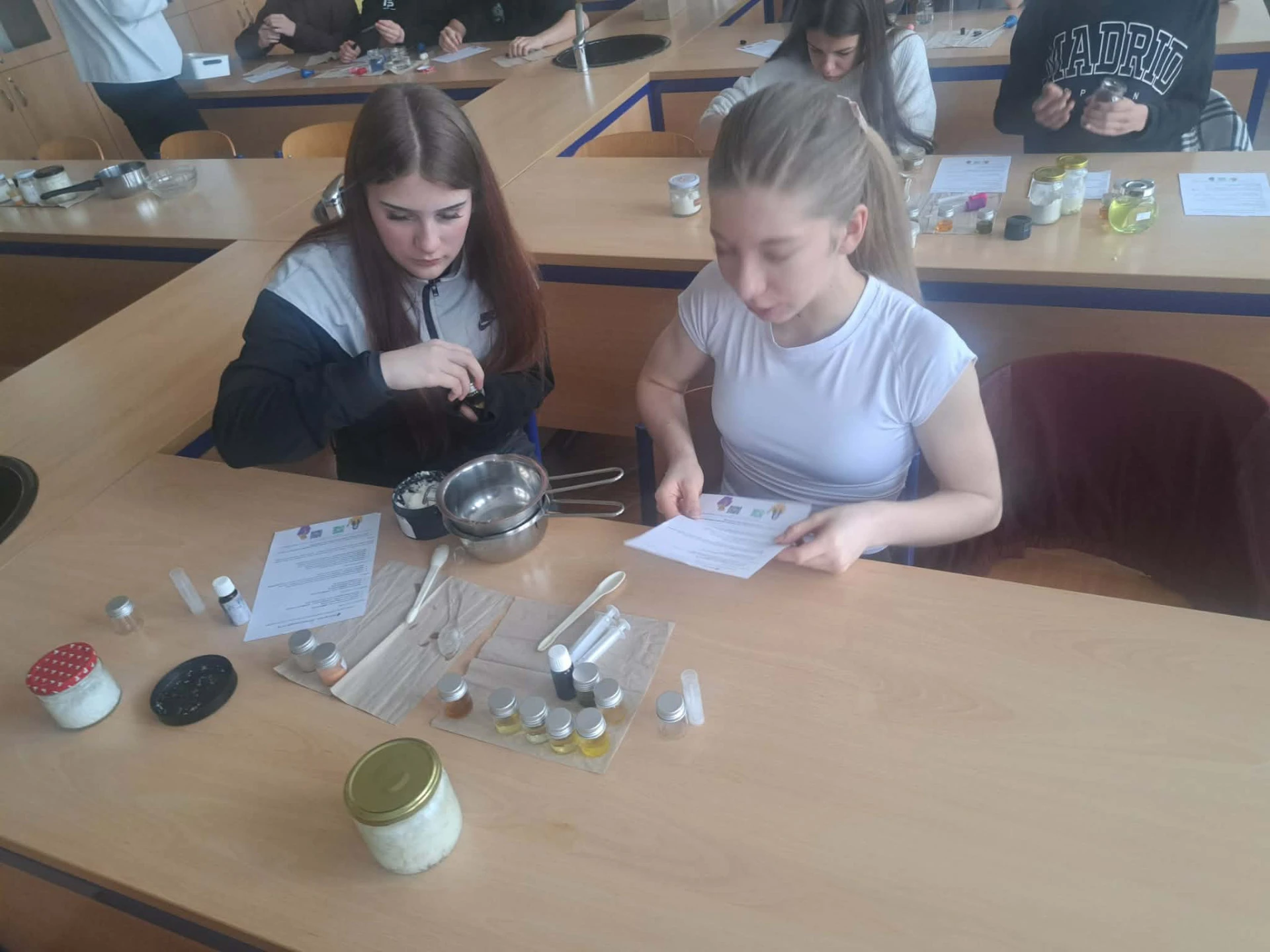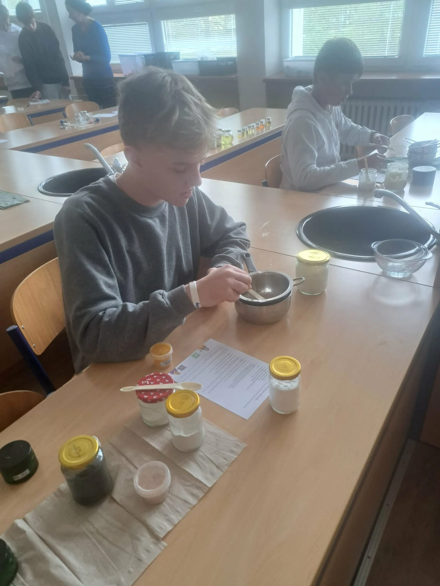 O tom, že ekologické vzdělávání může být zábavné, praktické a inspirativní se naši žáci přesvědčili na následném workshopu, kde si mohli připravit svůj vlastní parfém, pomádu na rty, pleťový krém či zubní pastu z běžně dostupných surovin.