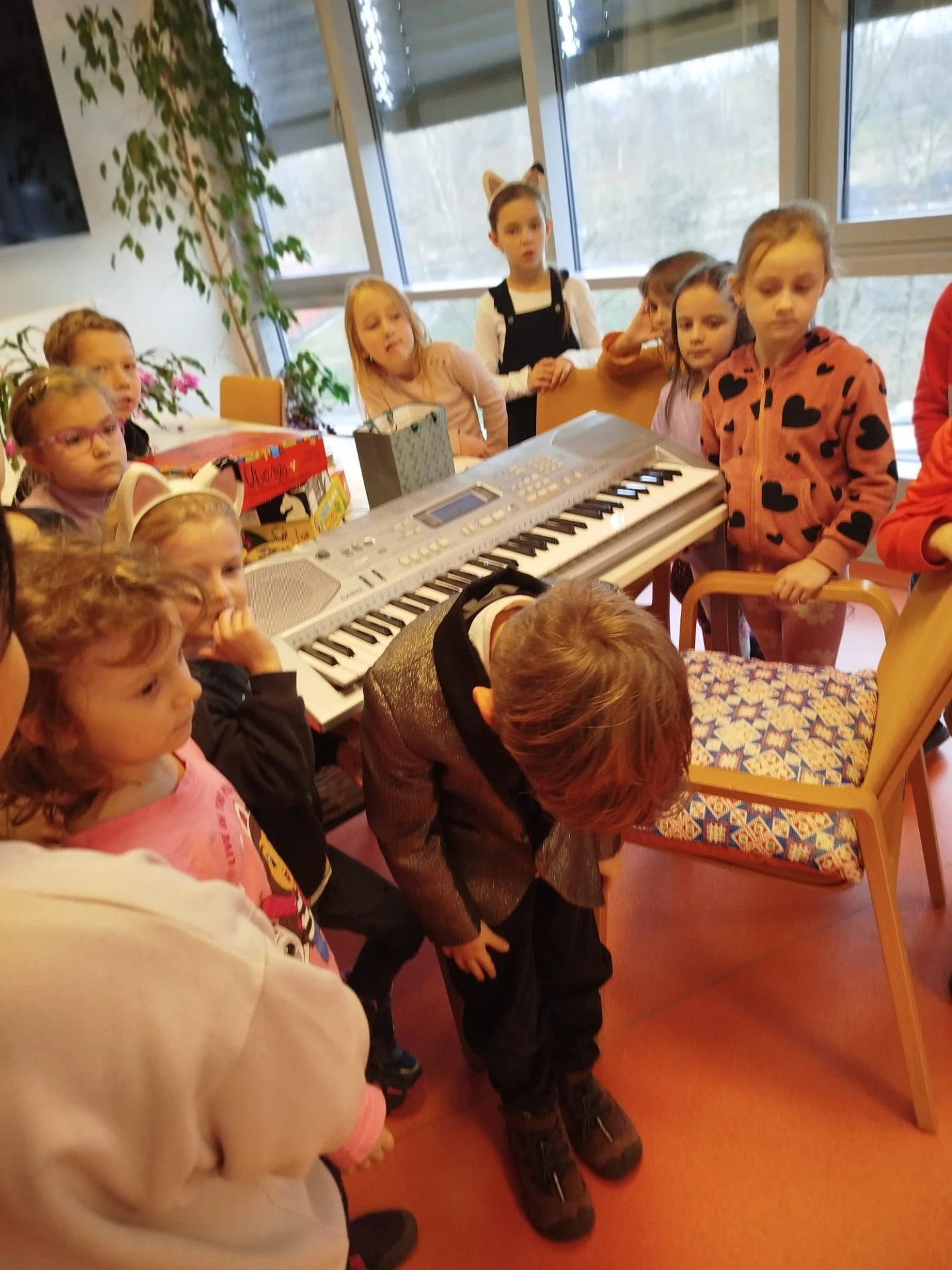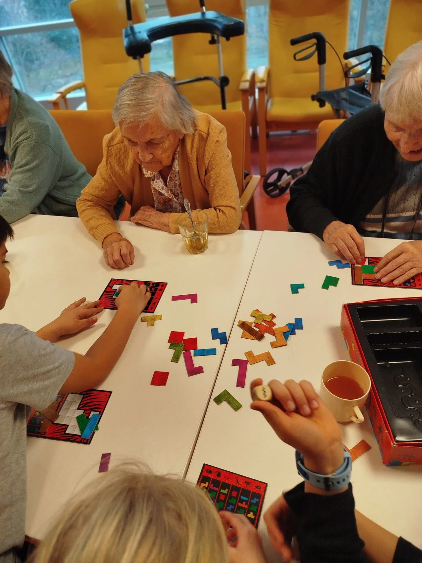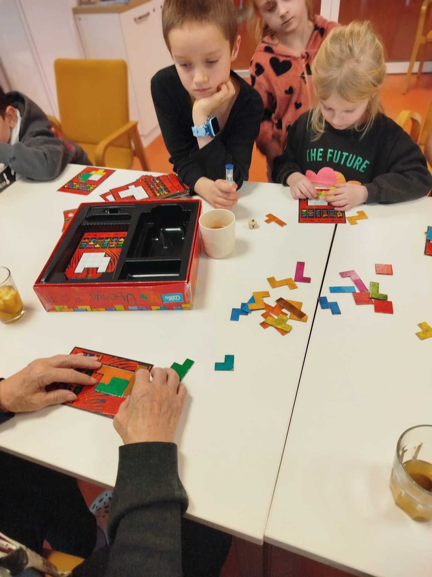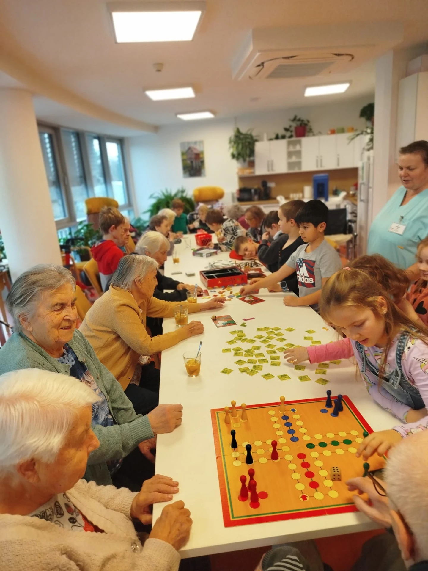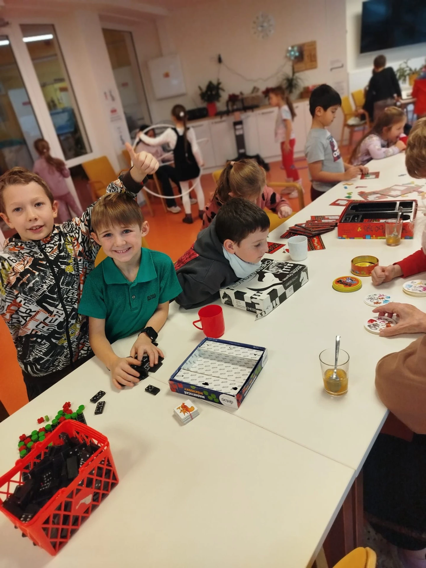 Děti ze školní družiny navštívily domov pro seniory na ul. 28. října dne 16. 12., aby obyvatelům zpestřily den, přinesly radost, zábavu a potěšení. Nově se představily děti z 1. C, zazpívaly písničky –Adámku náš, O drakovi a společně s dětmi 2.A – Vánoce, Vánoce přicházejí, Stojí vrba košatá.Na klavír doprovázel Oliver Kubíček. Sólově zazpíval Marek Tremboš- Pásli ovce Valaši. Následovala pohybová chvilka, šikovná děvčata točila obručí kolem svého těla. Po krátkém vystoupení se děti rozdělily na skupiny a začaly hrát s babičkami a dědečkem deskové hry. Dobble, Magnetické piškvorky, Šachy, Žížaly a nejvíce zaujala hra Ubongo, ve které se skládají geometrické tvary. Vánoční atmosféra, zaujetí pro činnost, klid a pohoda. Budování respektu, úcta ke stáří, propojení světa seniorů a dětí je cílem našeho projektu. A ten se nám daří.