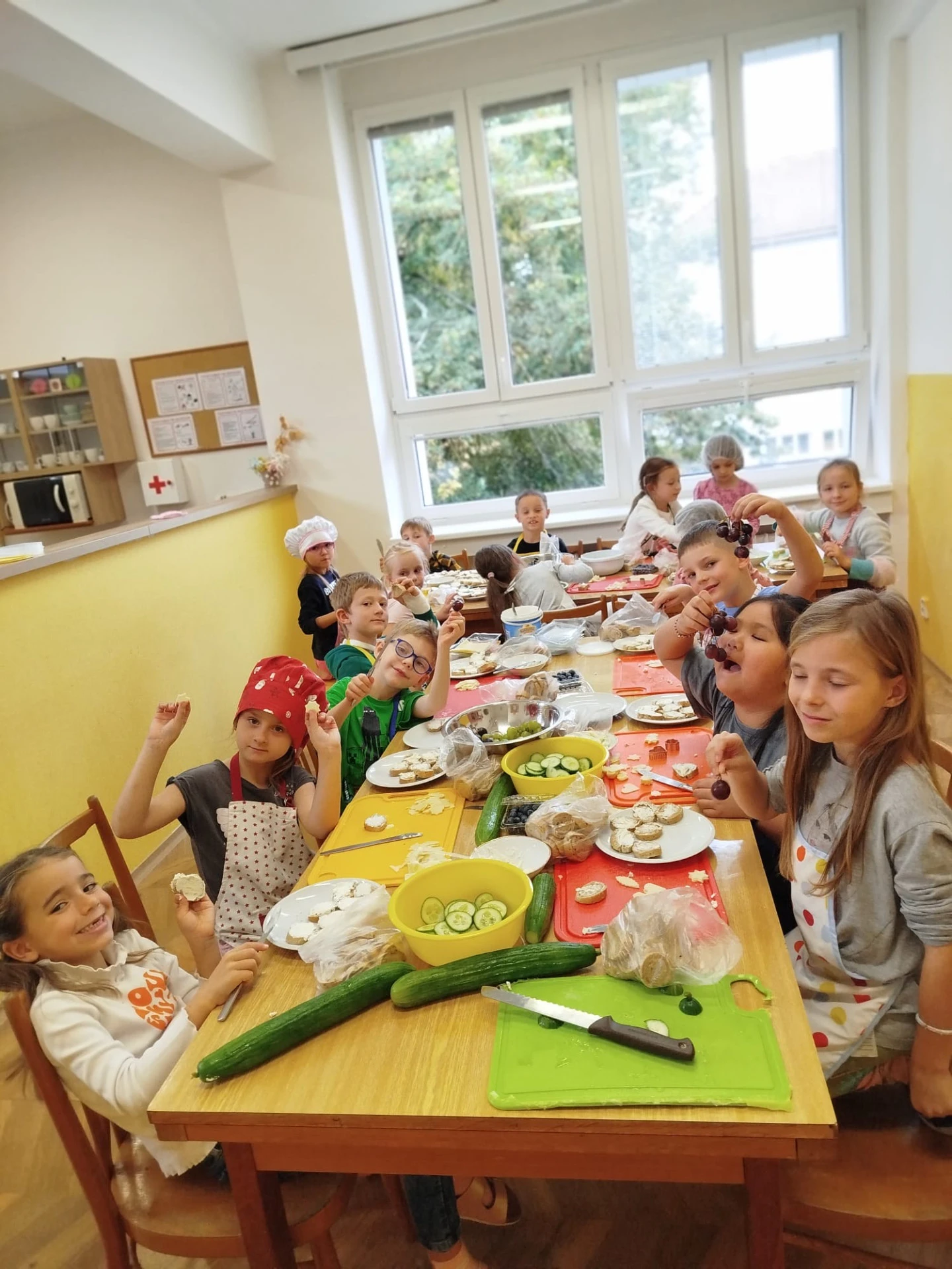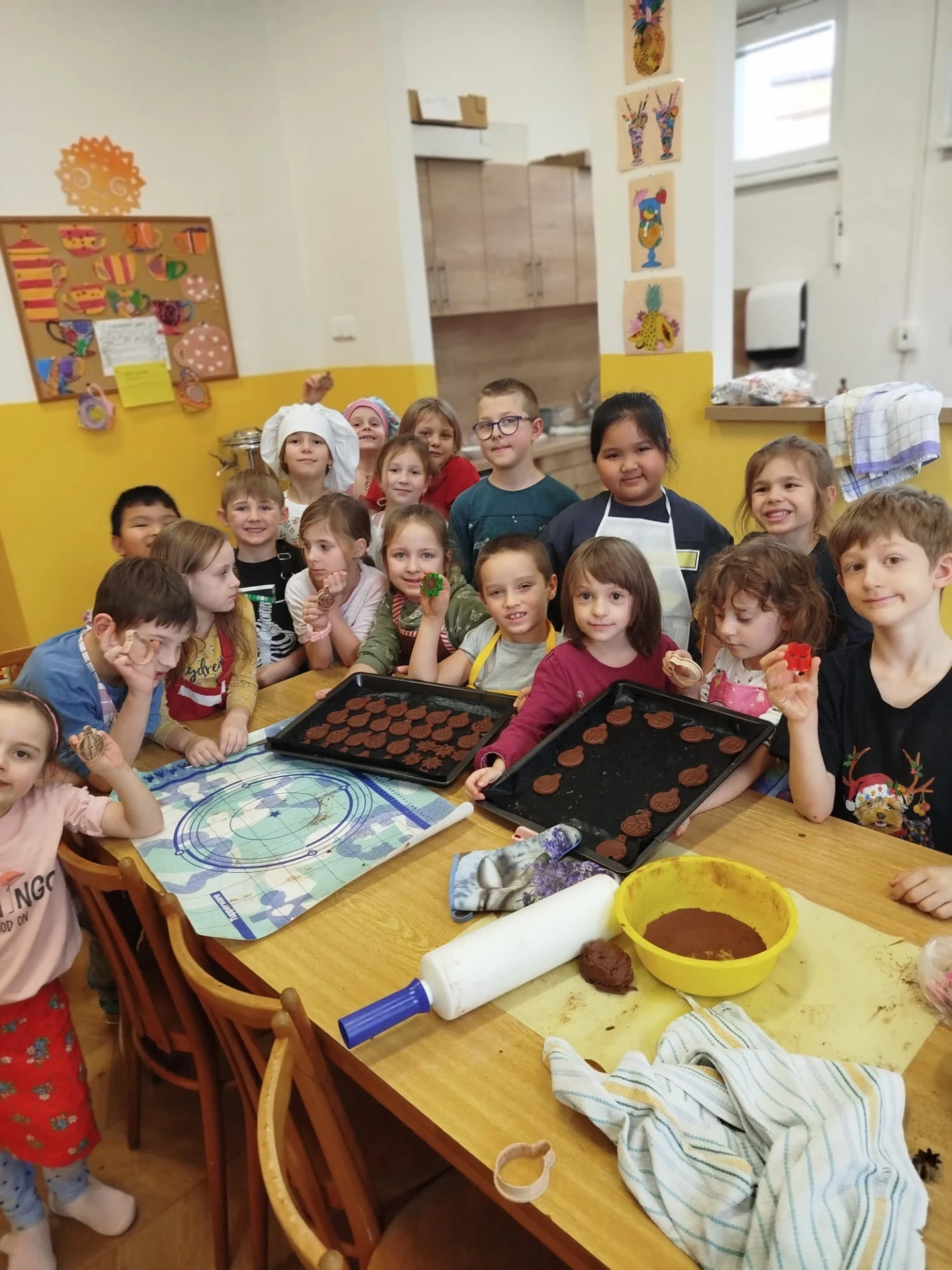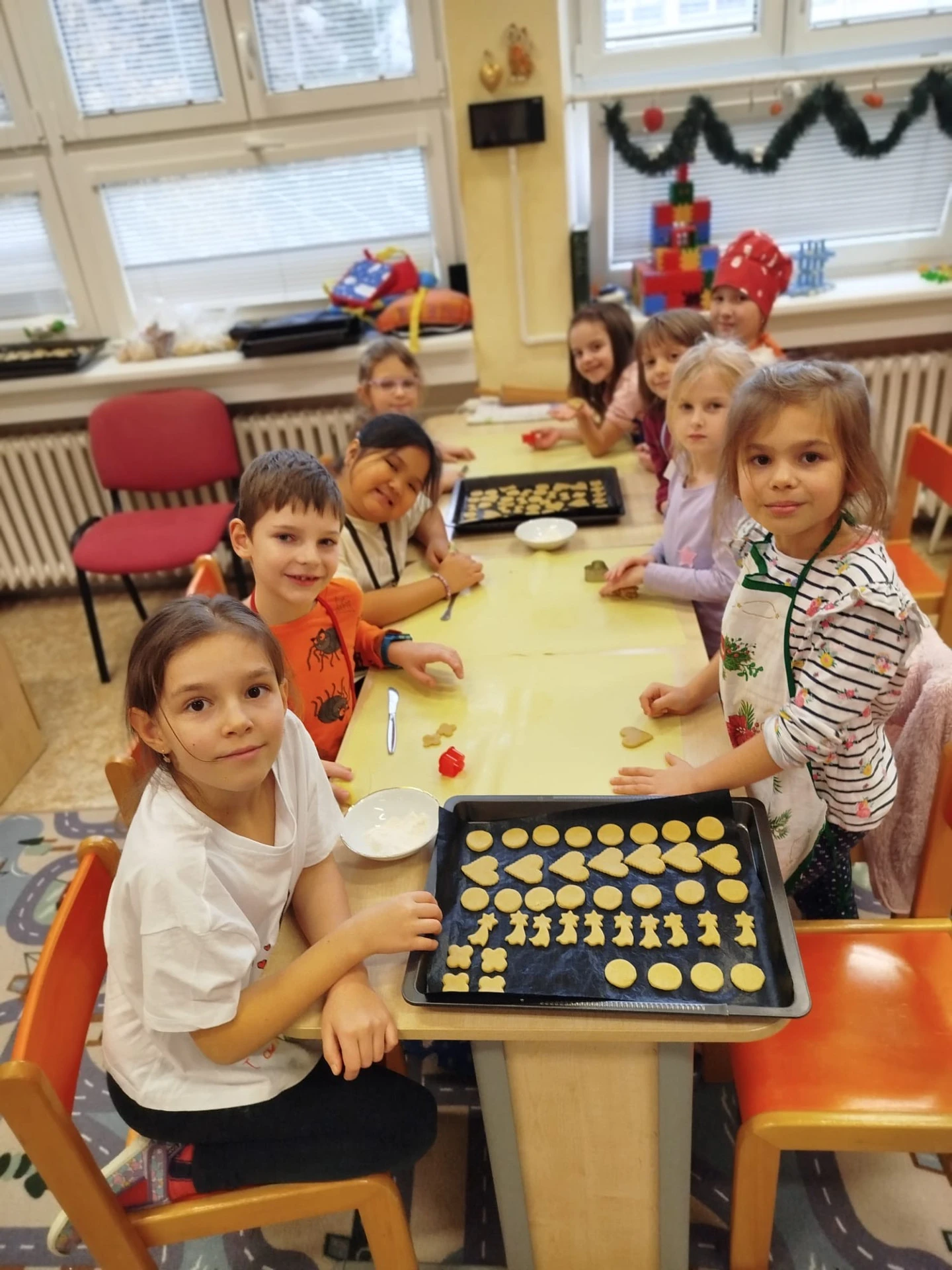 Gastronomie pro děti, připravovaná dětmi je stále oblíbenou a žádanou zájmovou činností ve školní družině. V září 2025 si děti vyzkoušely studenou kuchyni – menu na narozeninovou oslavu. Zjistila jsem, že nejvíce dětem chutnaly zelené okurky a bylo náročné “ubrzdit“ ochutnávání surovin než vznikl finální výrobek. V říjnu jsme pekli perníkový moučník s jablky. Dětem velmi chutnal. Následující listopadový kuchtík byl zaměřen na zdravou svačinku z ovoce a zeleniny, která se zapékala v toustovači. Také úspěšná volba, děti jedly s chutí. A závěr kalendářního roku se nesl v duchu českých vánočních tradic, peklo se linecké a skořicové cukroví, medové perníčky. Všichni si užívali vykrajování hvězdiček, srdíček a razítkování medových vloček, baněk. Hovořilo se o Vánocích. Nechyběla dobrá nálada, dětský smích a příjemná atmosféra. A to hřeje u srdce.