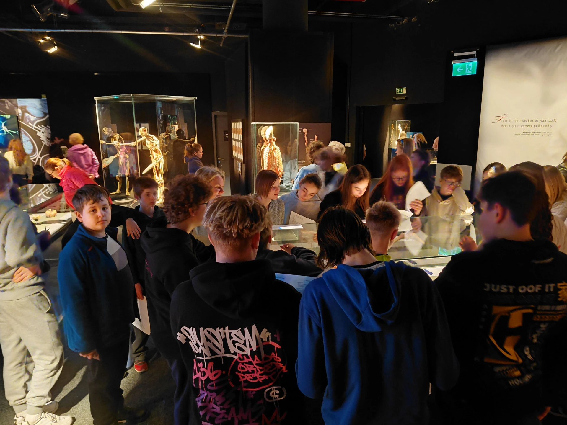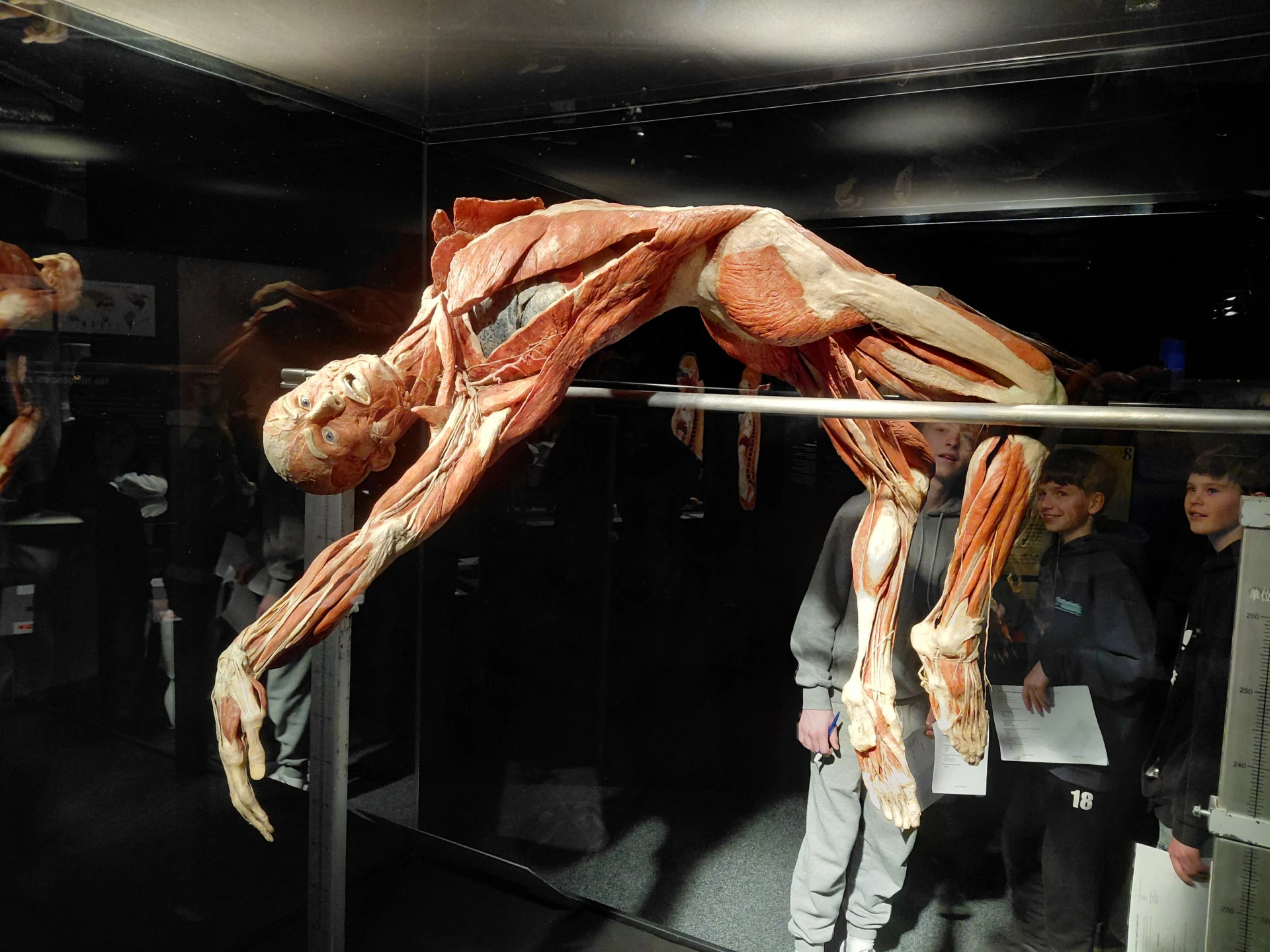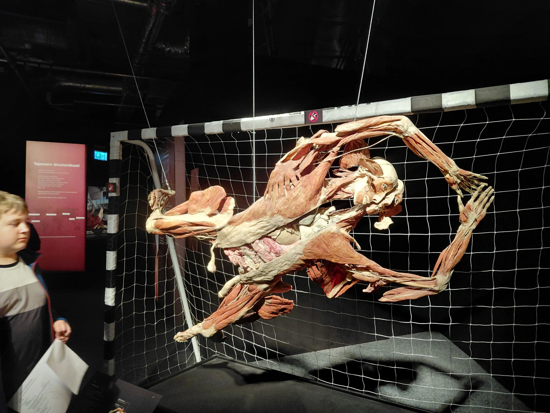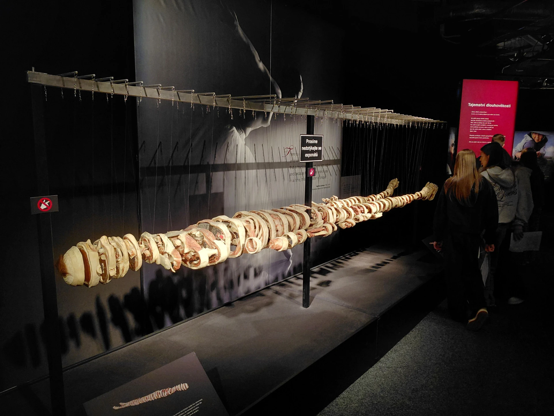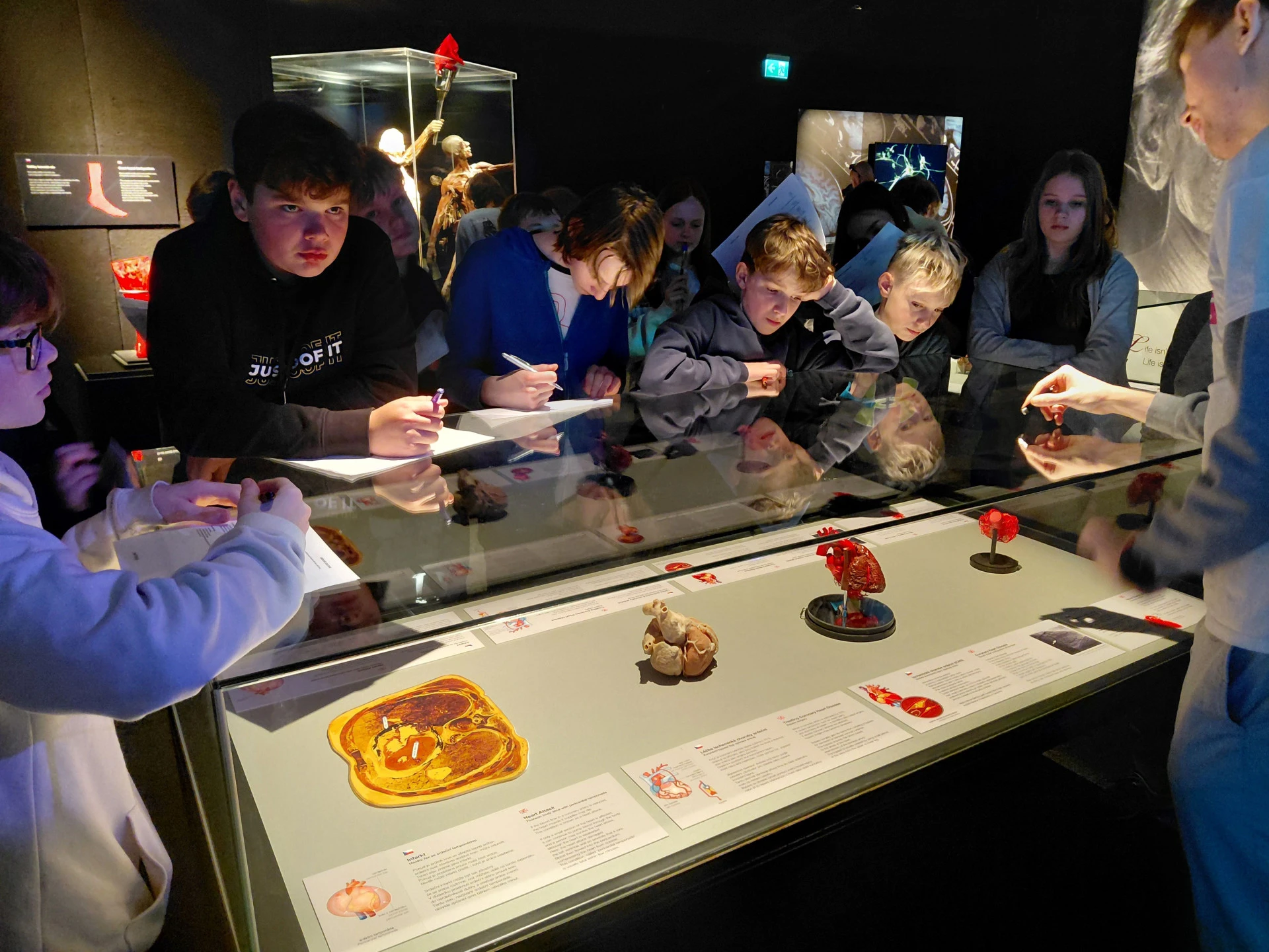 Celou výstavou nás provedl vyškolený medik, který žáky provedl „od hlavy až k patě“ – od kůže přes svalstvo a kostru až po nervový systém, oběhovou i dýchací soustavu, rozmnožovací soustavu a další orgány lidského těla.