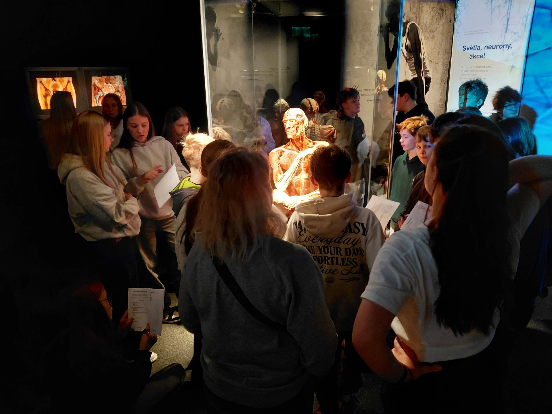 Po této procházce následovala návštěva výstavy BODY WORLDS – Cesta do lidského těla. Tato unikátní výstava poskytla žákům fascinující vhled do komplexní struktury lidského těla a srozumitelně vysvětlila, jak fungují jednotlivé orgány a tělesné soustavy.