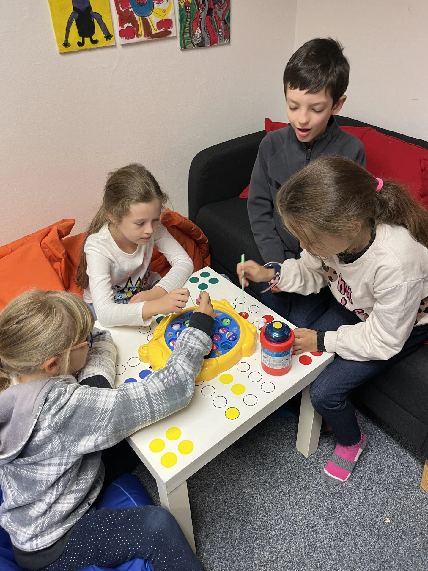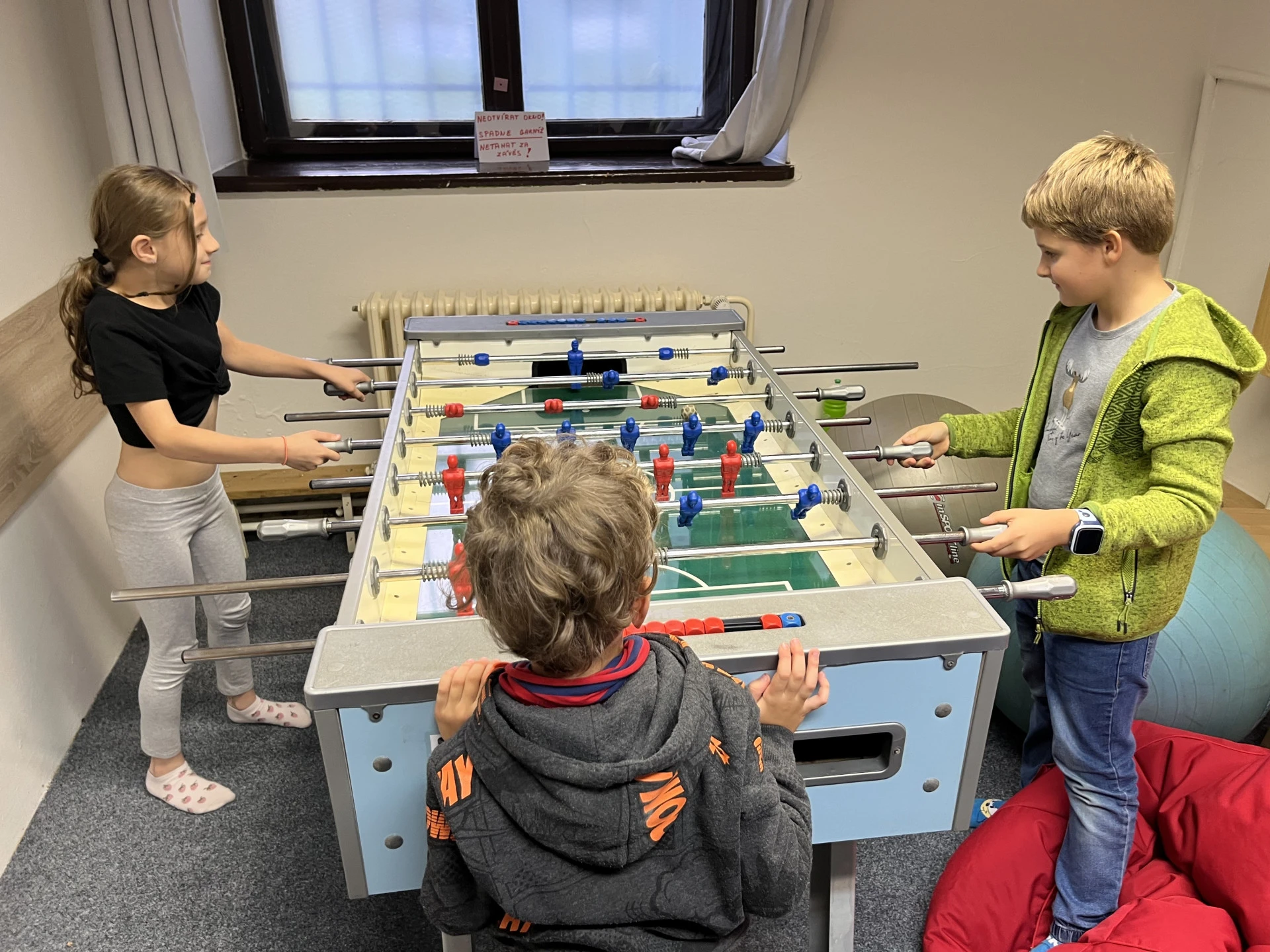 Ve středu 1.října jsme využili pozvání při příležitosti dnů otevřených dveří v nízkoprahovém zařízení pro děti a mládež v ,,Klubu Nezbeda“, který se nachází v Místku na ulici F.Čejky. V těchto útulných prostorech jsme si prohlédli výstavku výtvarných a kreativních výrobků a dvě herny bohatě vybavené společenskými, deskovými hry a stavebnicemi. Zaměstnankyně klubu nás seznámily s náplní a pravidly jejich organizace, která slouží dětem ve věku od 6 do 20 let. Mají zde širokou nabídkou aktivit a programů, které podporuje děti v trávení volného času. Samozřejmě jsme využily možnost si pohrát: kluci se pustili do souboje ve stolním fotbálku, holky do lovení rybiček, skládání puzzle nebo hraní karet. Taky se dětem líbil krásně prostřený stůl s občerstvením. Moc děkujeme všem zaměstnancům za milé přijetí a výborně připravenou akci. Naše děti se nejen seznámily s fungováním tohoto klubu, zaujalo je vybavení a programy, které klub nabízí. Naše děti přislíbily, že ve volném čase nebo při nepříznivém počasí určitě tento místecký klub navštíví.