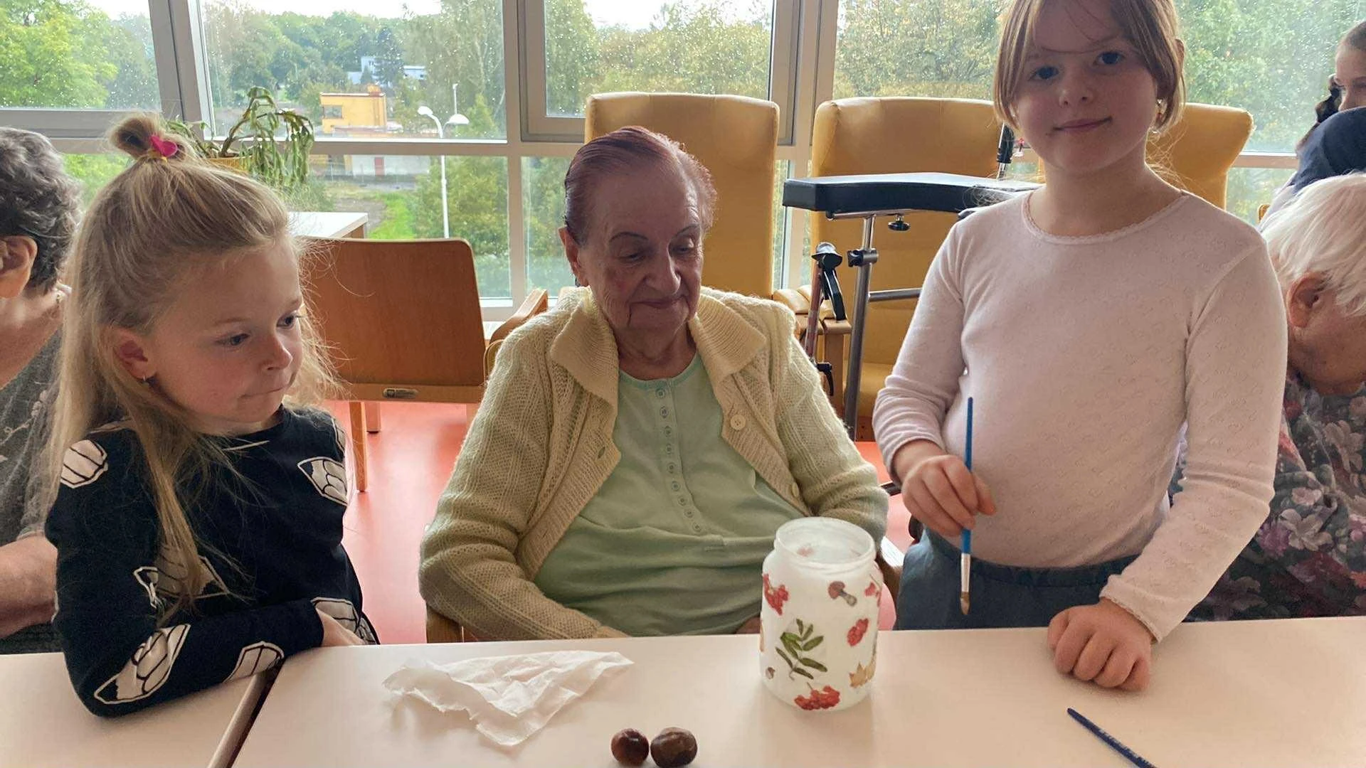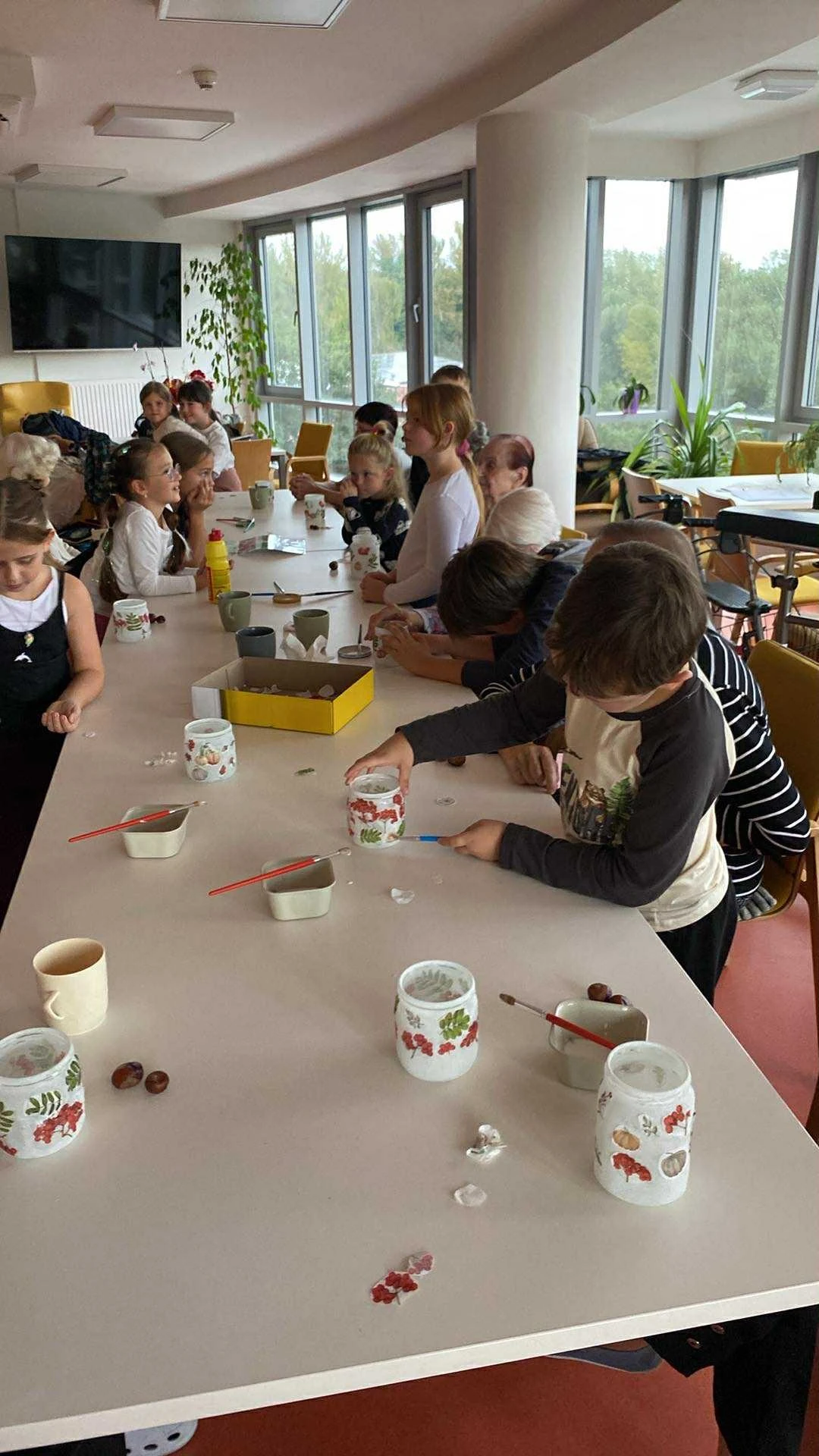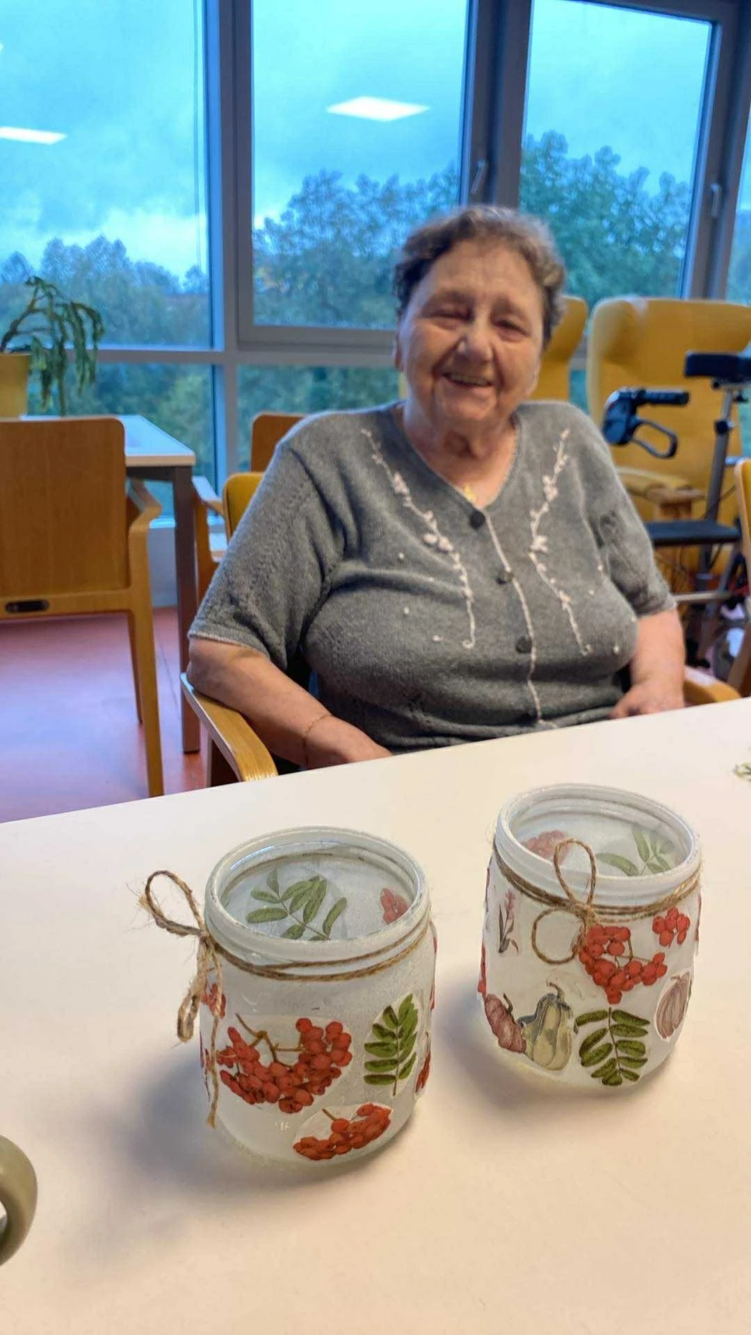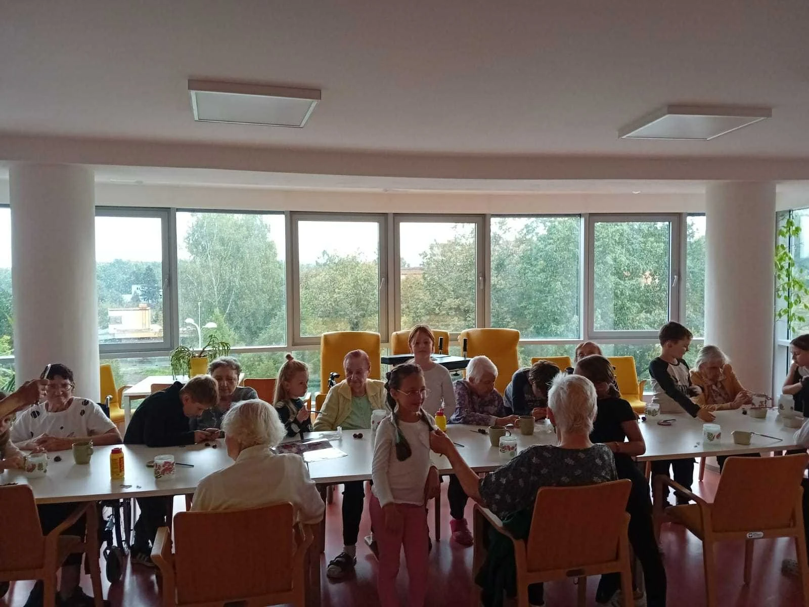 Po programu jsme se pustili do tvoření. Babičky a děti společně vyráběly svícny, které krásně ladí s atmosférou podzimu. Když se dny krátí a večery jsou ideální pro zapálení svíček, mohou hotové svícny rozjasnit domovy seniorů a přinést do jejich podzimních dní kousek tepla, barev a pohody.