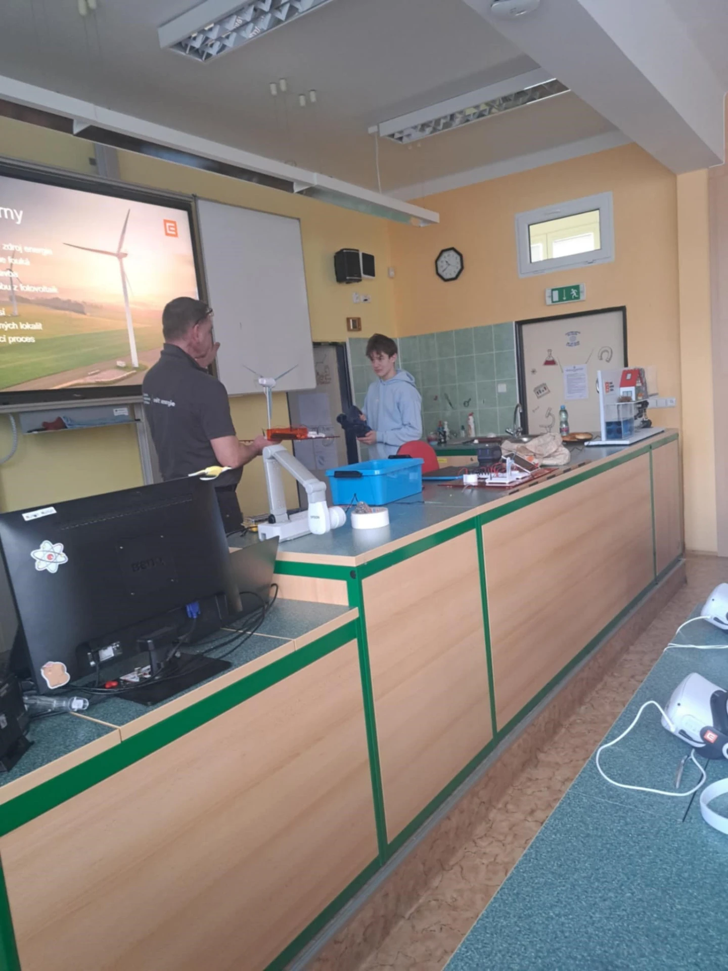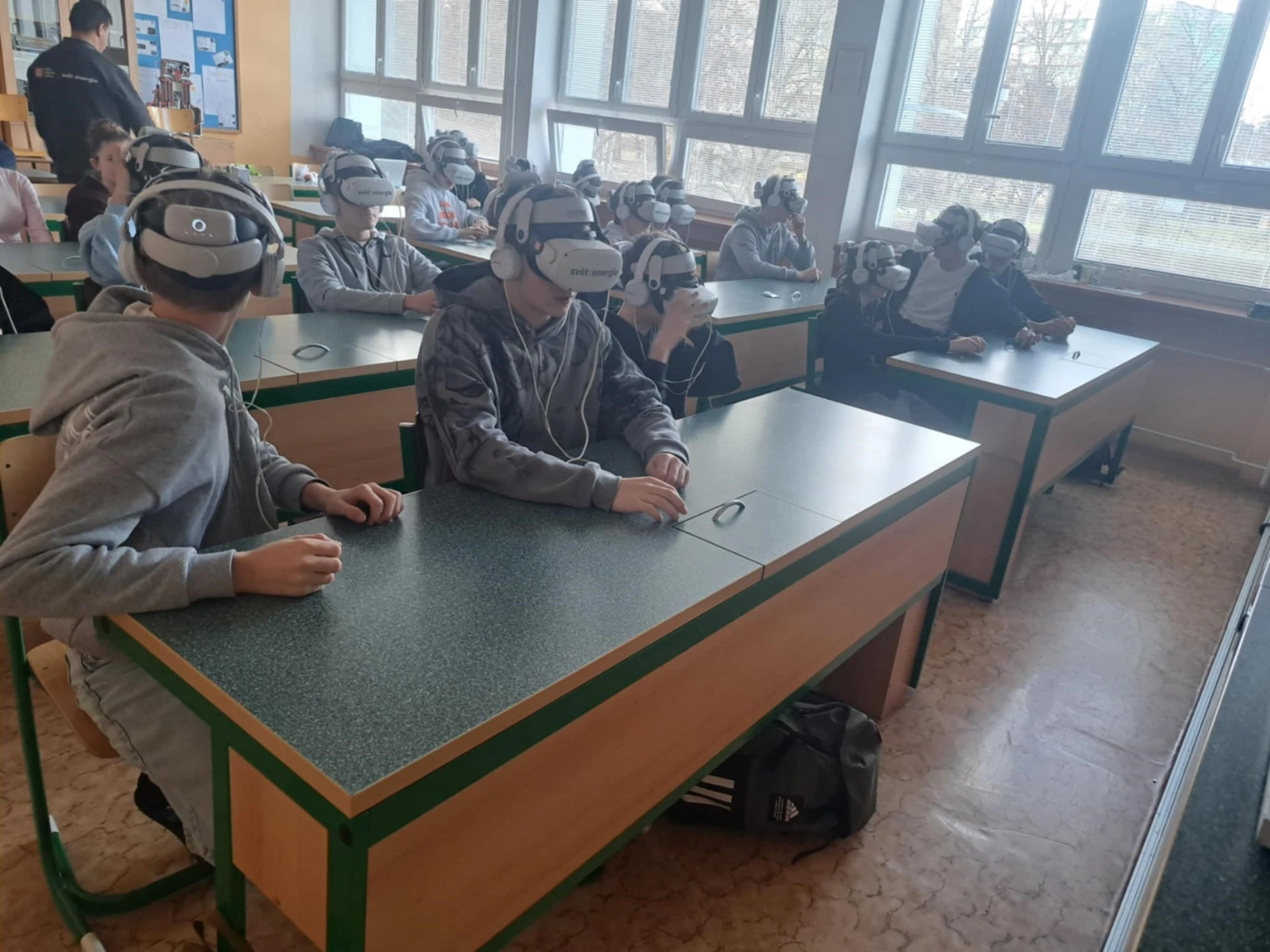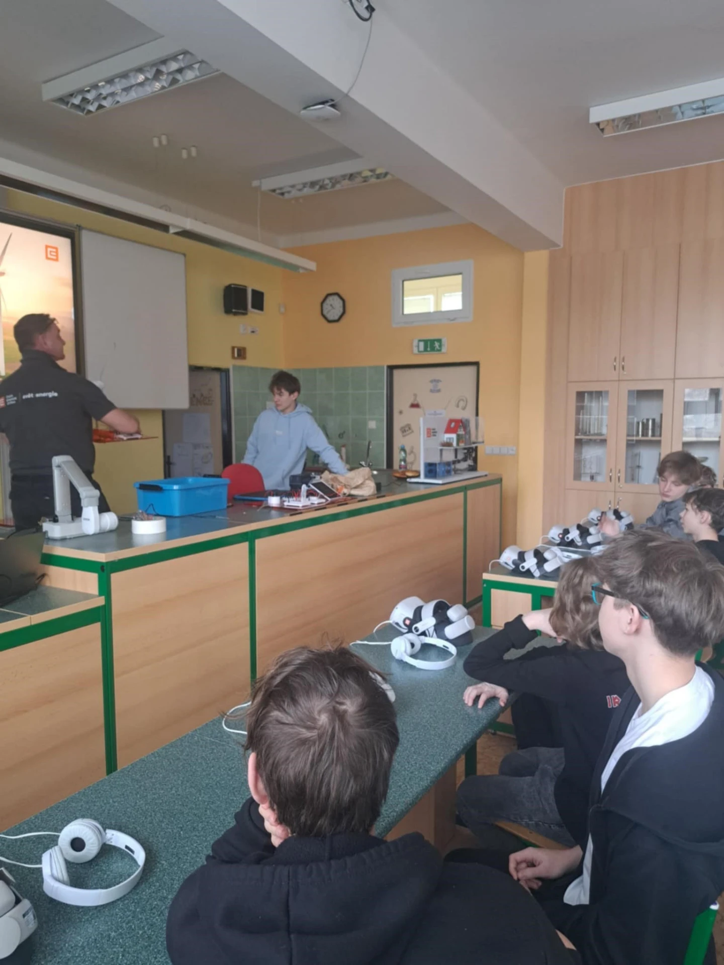 Žáci devátých ročníku se zúčastnili interaktivní přednášky Skupiny ČEZ zaměřené na budoucnost energetiky. Dozvěděli se, jak může vypadat energetický mix ČR, které obnovitelné zdroje jsou pro naši zemi nejvhodnější a jak je možné energii ukládat i kolik je v ČR aktuálně elektráren.