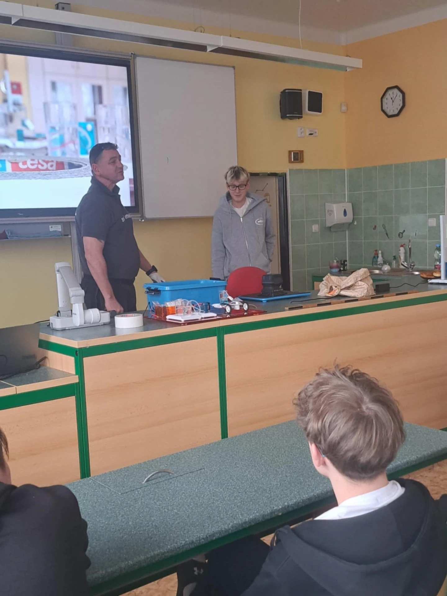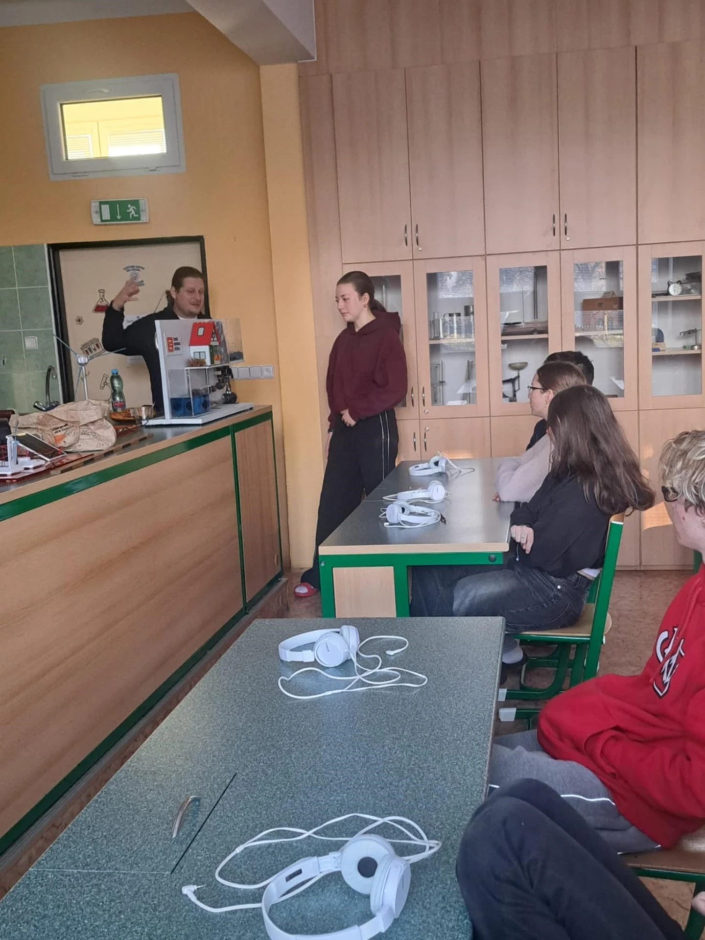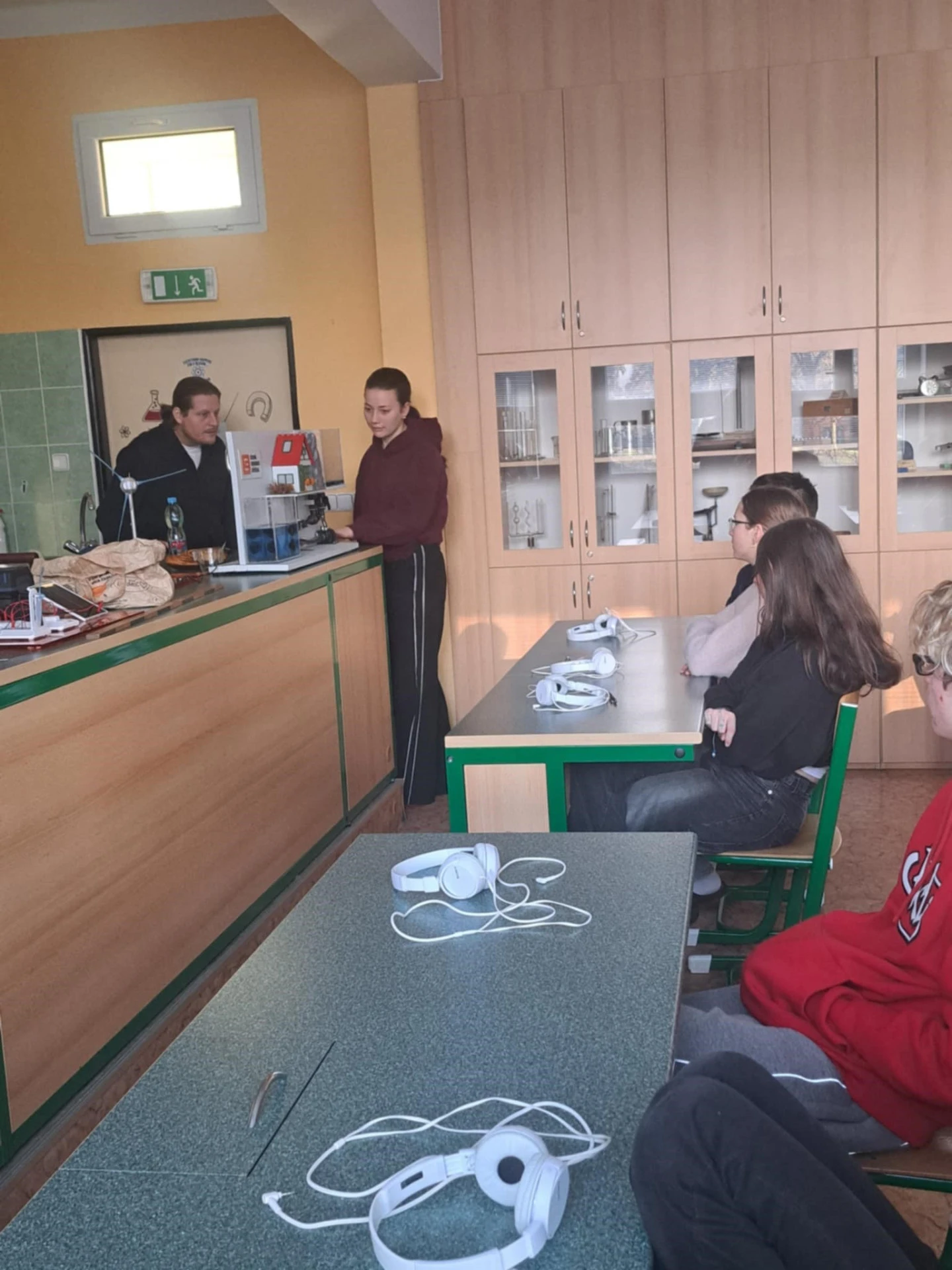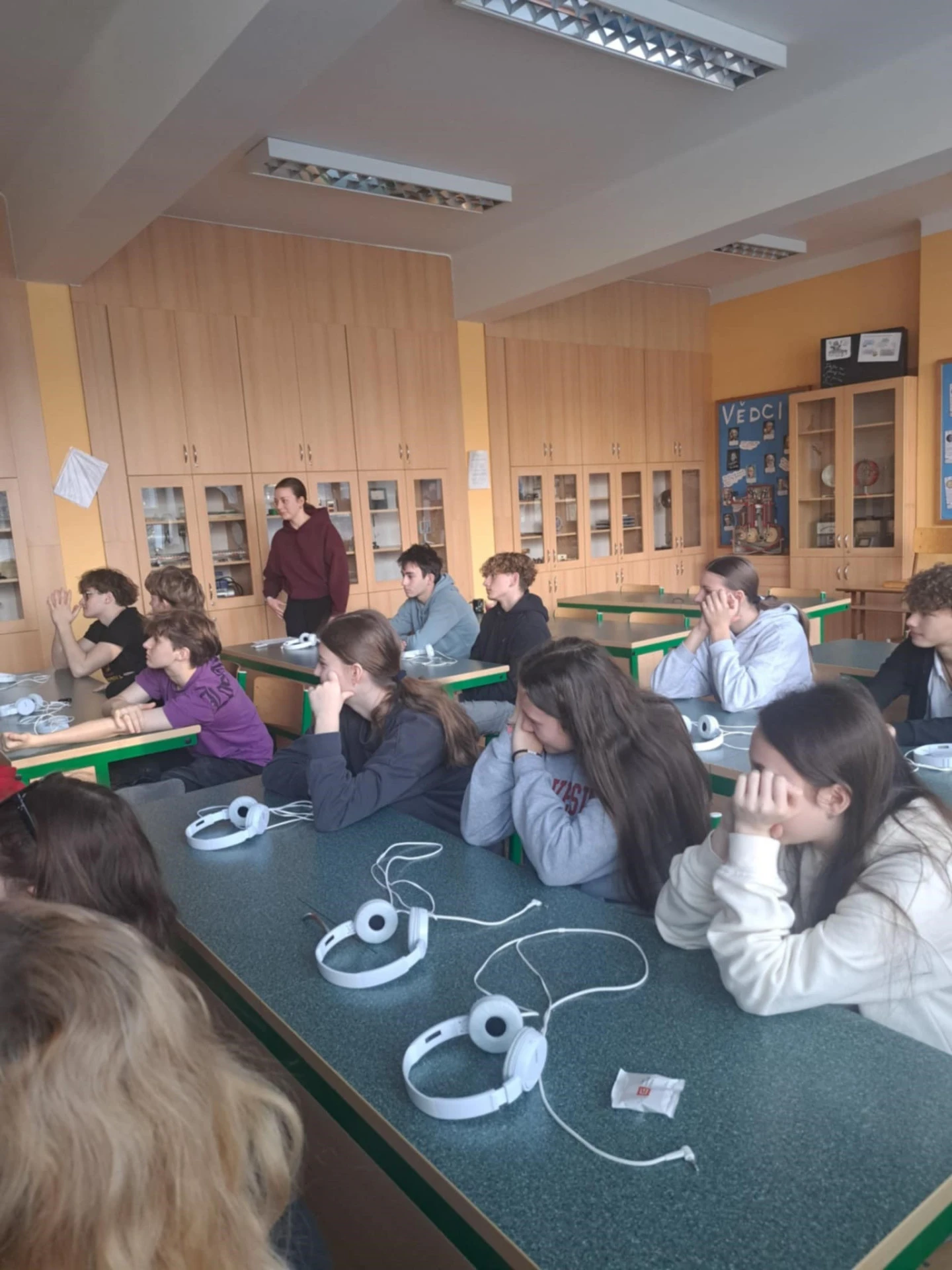 Žáci devátých ročníku se zúčastnili interaktivní přednášky Skupiny ČEZ zaměřené na budoucnost energetiky. Dozvěděli se, jak může vypadat energetický mix ČR, které obnovitelné zdroje jsou pro naši zemi nejvhodnější a jak je možné energii ukládat i kolik je v ČR aktuálně elektráren.
