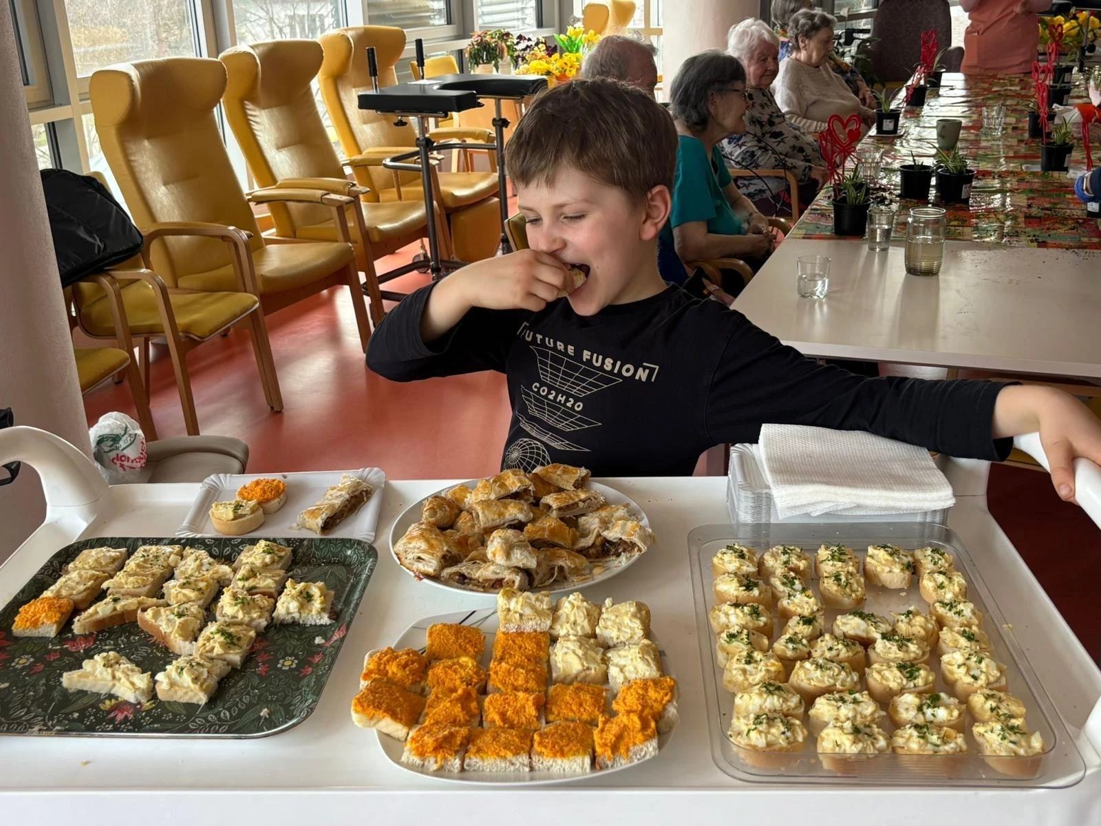 Minulý týden zavítaly děti ze školní družiny do domova seniorů. Připravily si pro ně krásný program – tančily, zpívaly, zahrály divadelní příběh Kupec bez peněz a nechyběla ani hra na klávesy. Každý úsměv, každé tlesknutí a každé rozzářené oko bylo odměnou, která nás zahřála u srdce.