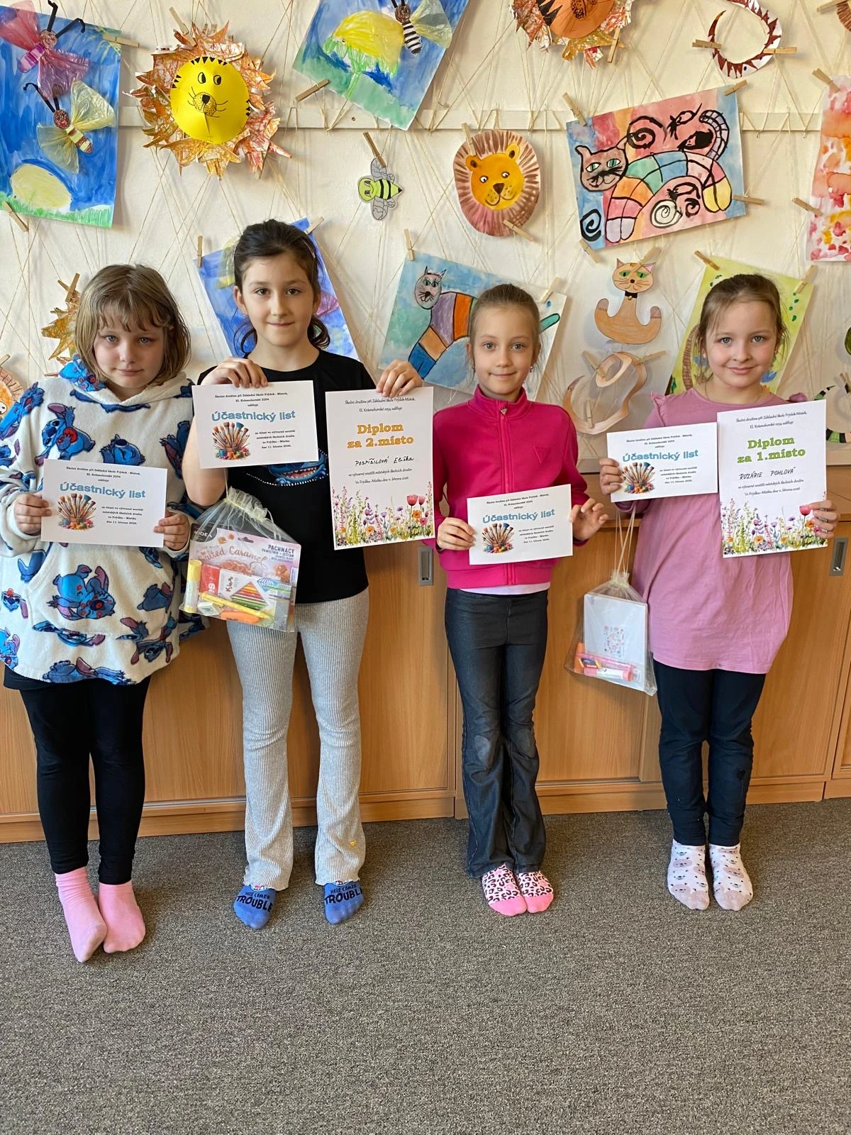Ve středu 11. března proběhla na 5. ZŠ ve Frýdku‑Místku výtvarná soutěž meziměstských školních družin. Do soutěže se zapojilo celkem 12 škol, takže konkurence byla opravdu vysoká. Naši školu reprezentovaly Rozárie Pohlová (1.C), Julie Anna Morys (2.B), Eliška Pospíšilová (3.A) a Elena Tichavská (4.A).